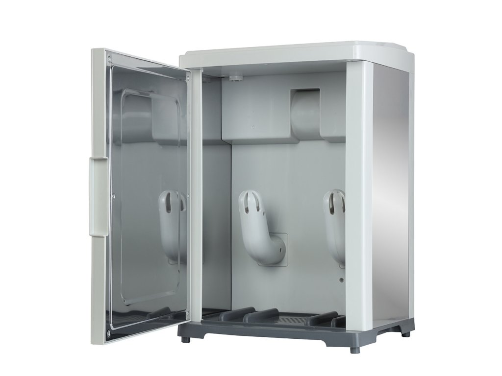 Vaše mokré alebo vlhké topánky atď. Sú nielen efektívne a šetrne sušené, ale sú tiež zbavené choroboplodných zárodkov a baktérií vďaka ionizačnej funkcii, ktorá zabraňuje vzniku nepríjemného zápachu alebo plesní. Vlhkosť je ideálnou živnou pôdou pre huby a baktérie, a preto je dôležité účinné sušenie obuvi atď. Vrátane sterilizácie ionizáciou.